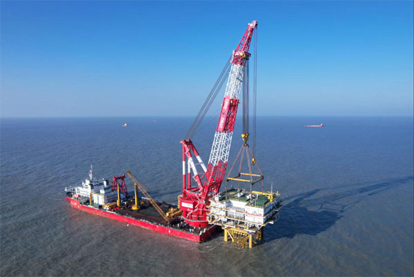 海南东方CZ8海上风电项目升压站进行吊装